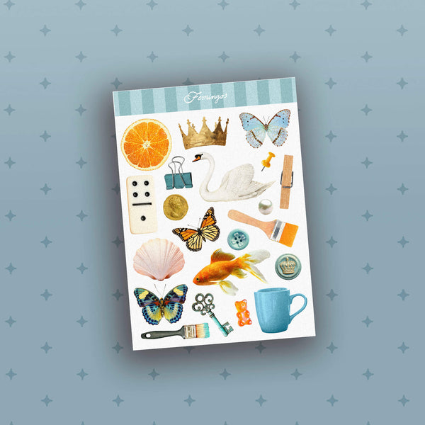Cartela com imagens variadas para recortar e aperfeiçoar suas colagens. No formato de arquivo digital para imprimir em casa quantas vezes quiser.